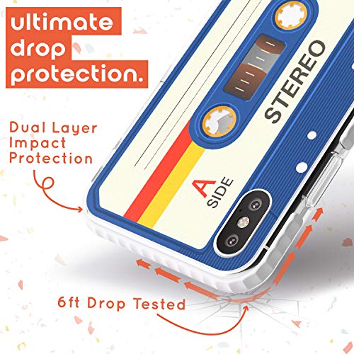 Retro Cassette Tape - Custodia per telefono antiurto blu e rosso per iPhone XR TPU luce protettiva resistente cover con mixtape vintage Old Music 80S