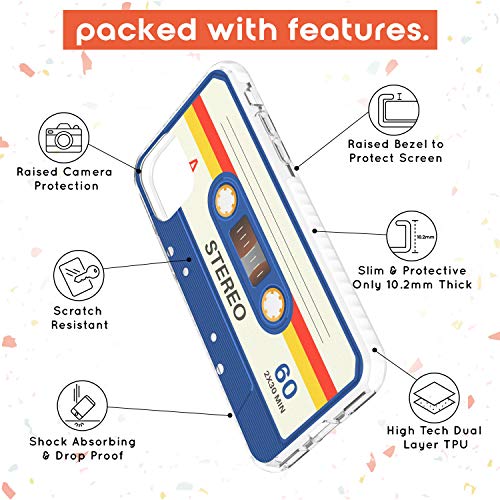 Retro Cassette Tape - Navy & Red Impact Cover per iPhone 11 PRO TPU Protettivo Phone Leggero con Mixtape Vintage ▾ Vecchio Musica Anni 80 Vintage