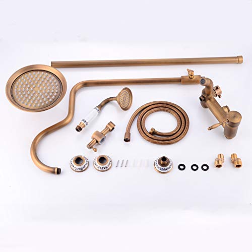 Retro Colonna Doccia Sistema Soffione a Muro Ottone Antico con Doccetta e Pioggia Soffione Altezza regolabile Vintage Blu e Bianco porcellana Miscelatore Bagno,Antiqueshower