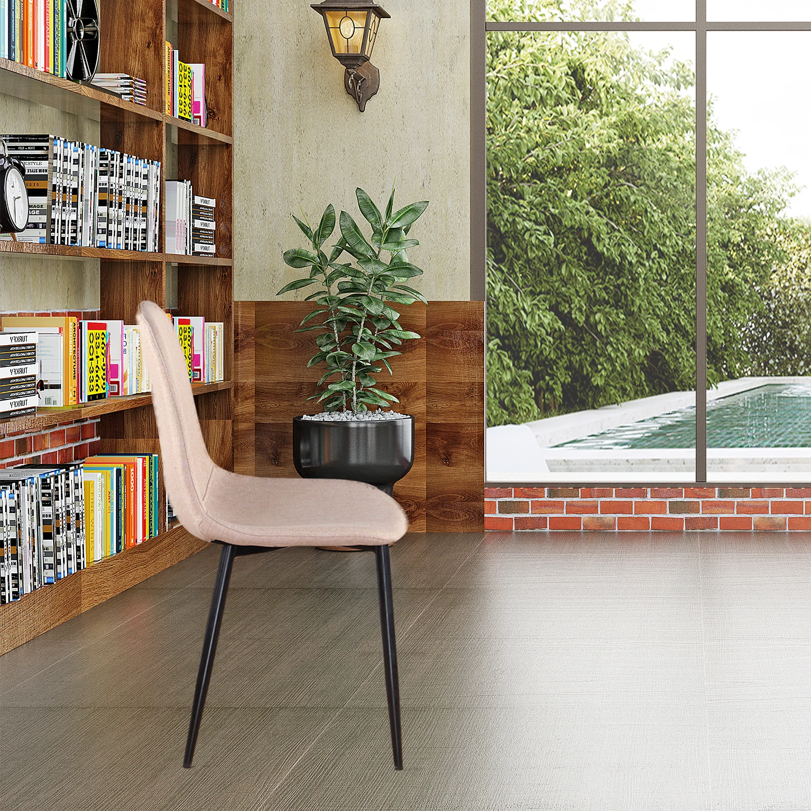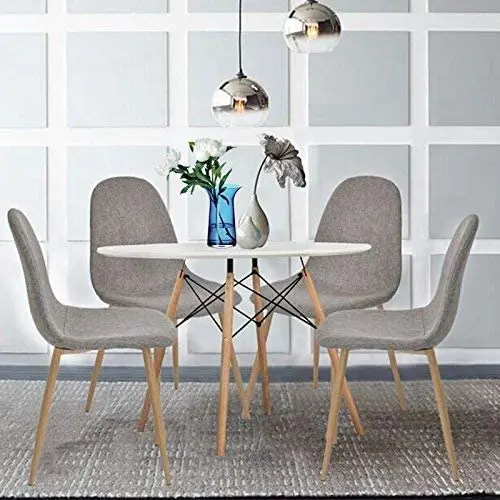 A set of 4 retro cotton and linen upholstered dining chairs, solid metal feet, kitchen living room (gray / blue / green / khaki)
