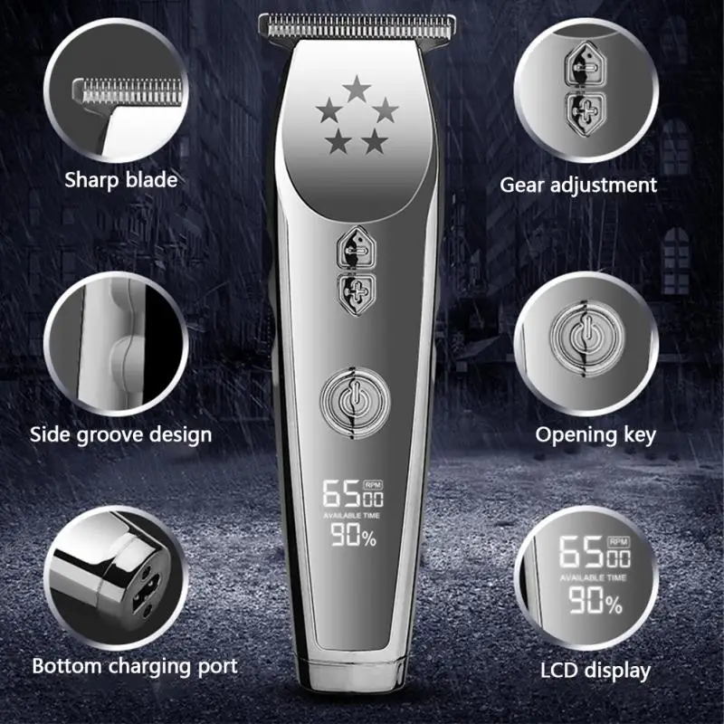 Retro Oil Head Electric Clipper Strong Power LCD Display Hair Clipper Carving Marks Gradient Electric Fader European Regulations