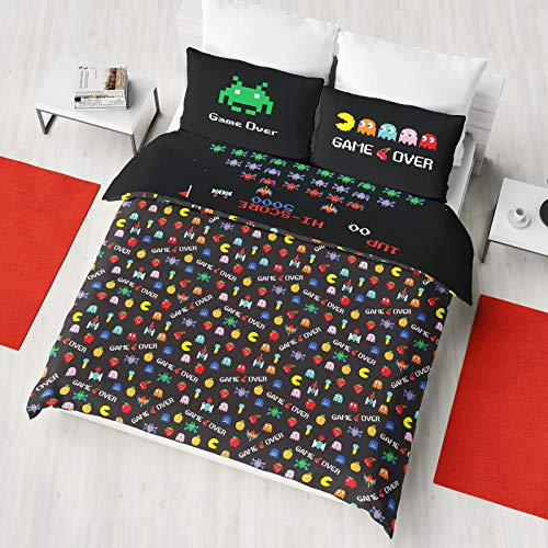 Retro Games - Set copripiumino per letto singolo/matrimoniale, double-face, motivo videogiochi, Multicolore, doppio piumino