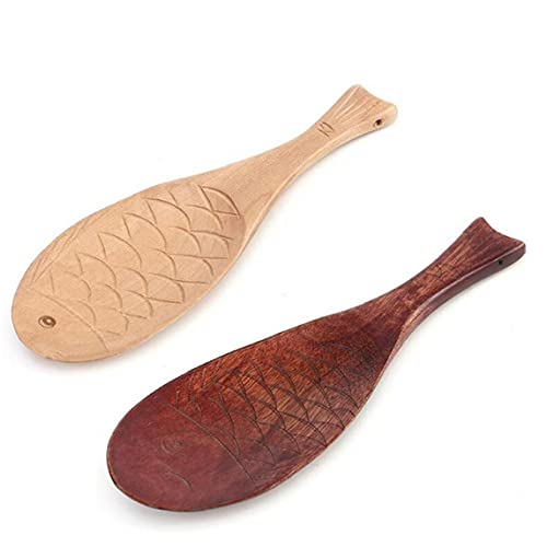 2pcs Retro Riso in Legno Cucchiaio Di Riso Pesce Pala Nanmu Cucchiaio Di Riso a Forma Di Pesce Spoon Intagliato a Mano Cucchiaio Di Riso