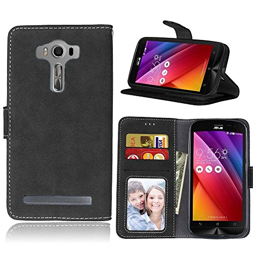 COZY HUT Retro Matte Design Con Magnetico Snap-on Book style Internamente Silicone TPU Custodie Cover Per Asus ZenFone 2 Laser ZE500KL (5,0 Zoll) - nero opaco