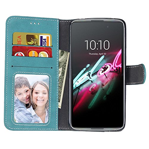 COZY HUT Retro Matte Design con Magnetico Snap-on Book Style Internamente Silicone TPU Custodie Cover per Alcatel One Touch Idol 3 (4,7 Zoll) - Camice Blu