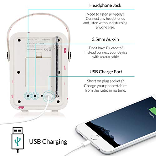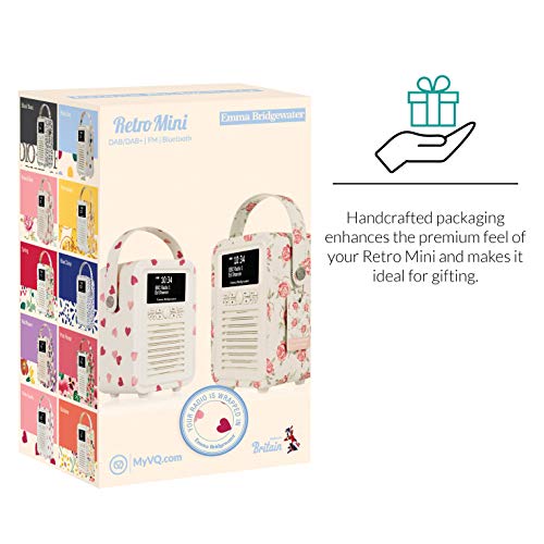 VQ Retro Mini DAB+ Radio Digitale con FM, Bluetooth e Sveglia - Emma Bridgewater Pink Hearts