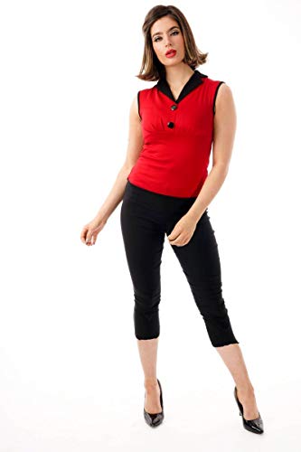 Ro Rox Emma Retro Rockabilly Pin Up 1950's Vintage Pinup V Neck Top - Rosso (XS)