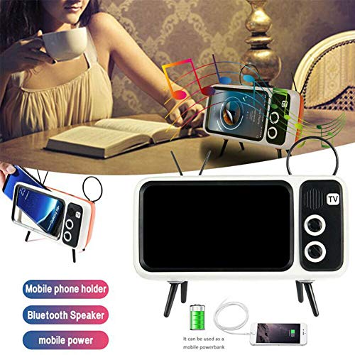 【TV-shaped Stand】 - Mobile Phone Stand Suitable for under 6 inches smartphones. Mobile phone TV-shaped Bluetooth speaker with unlimited creativity, makes mobile phone a retro TV within seconds.