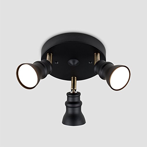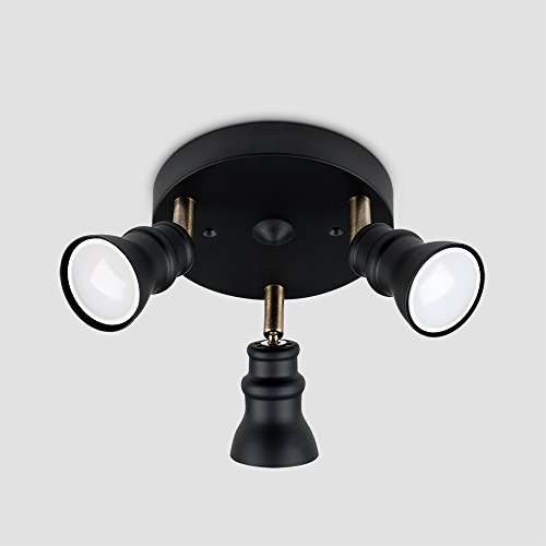 Retro Style Nero & Ottone Antico 3 Vie Rotondo Faretto Soffitto Regolabile
