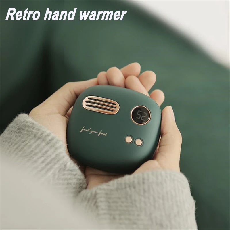 2 in 1 Retro Winter Hand Warmer Power Bank Electronic Digital Display Powerbank Portable Chargeable USB Heater 2 Side Warmer