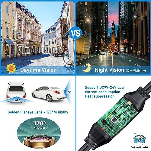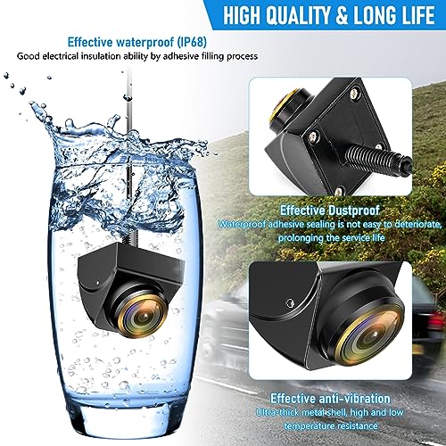 【Migliora l'esperienza di guida】:Telecamera per retromarcia è progettata con bordi dorati e l'ampio obiettivo fisheye da 170 gradi copre la maggior parte degli angoli ciechi per garantire il massimo campo visivo sulla strada. La telecamera ha una risoluzione ad alta definizione di 720P ed è compatibile con tutti gli schermi che supportano l'ingresso video RCA, come la radio stereo Dual DIN,il lettore DVD Android, il display dello specchietto retrovisore e il display LCD TFT per la retromarcia.