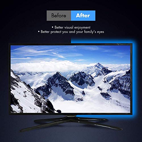 Sicuro e risparmio energetico: retroilluminazione TV con alimentazione USB, solo 5 V in uscita, basso consumo energetico e lunga durata (oltre 50.000 ore). Sicurezza per il tocco umano, certificato CE ROHS UL GS.