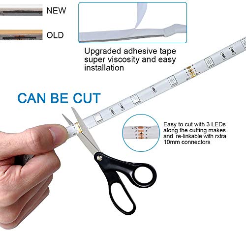 ➽ Semplice Installazione - La striscia di LED viene fornito con il connettore collegato. Hai solo bisogno di collegare il alimentatore e funzionerà. L'adesivo 10M 200MP sul retro consente a tutti l'installazione del prodotto nel modo più semplice e veloce.Striscie flessibili che si adattano a qualunque superficie. Se si desidera creare una specifica lunghezza è possibile tagliare la striscia di LED da soli ogni 10cm. Questo può essere fatto con un paio di forbici.