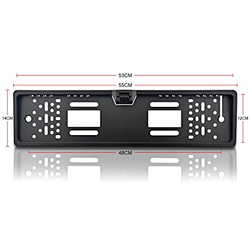 targa con il colore 170 ¡ã telecamera di retromarcia, con la funzione di visione notturna a infrarossi. Colore telecamera posteriore con porta targa UE posizione verticale regolabile con linee distanziatori e funzione dello specchio.