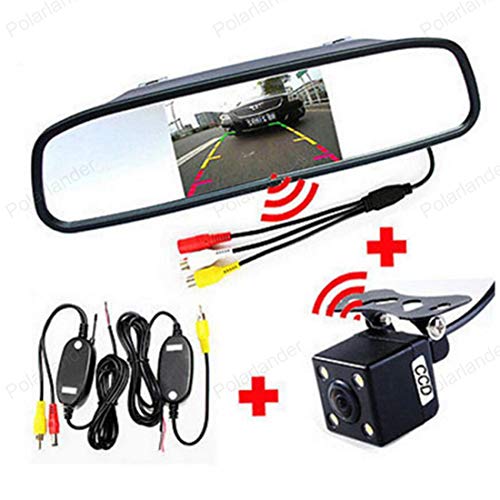Retrovisore auto retrovisore da 4.3 pollici Monitor per parcheggio + 4 LED CCD per visione notturna Retrovisore Telecamera per parcheggio automatico con kit ricevitore trasmettitore wireless