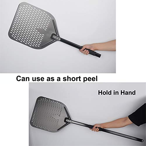 XDJ 12"/ 13"/ 14" Rettangolare Pizza Metallo Spatola, Perforato Alluminio Pizza Pala al Forno con Resistente alle Alte Temperature, per Cottura Fatti in Casa Pizze Pane, Lungo E Corto Maniglia
