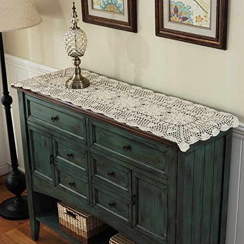 Copritavola/centrino rettangolare realizzato al 100% a mano, all'uncinetto, 100% cotone, Beige, 16x35 Inch