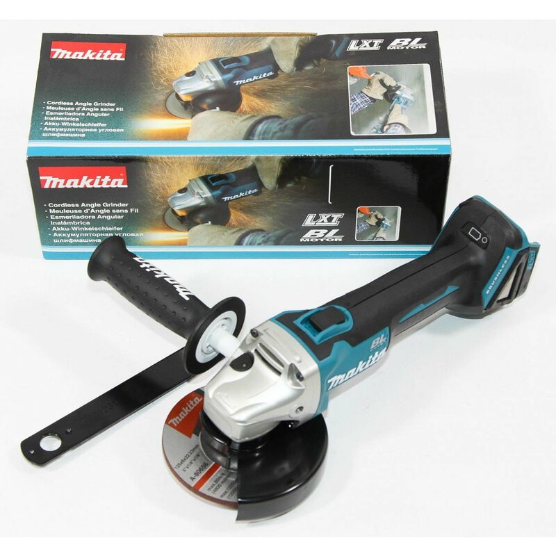 Contenuto spedizione: 1 rettificatore angolare SOLO Makita DGA 504 Z, a 18 V, con batteria agli ioni di litio 1 disco per affilatura Makita, da 125 mm, A-80656 1 utensile di montaggio. 1 impugnatura supplementare 1 istruzioni (lingua italiana non garantita) Descrizione del prodotto: Il rettificatore angolare Makita DGA 504 da 18 V è molto maneggevole, ha una batteria agli ioni di litio, adatta a dischi da taglio fino a 125 mm di diametro. Il controllo automatico della velocità regola automaticamente a seconda della necessità l'alta velocità per operazioni di taglio o una coppia elevata per i lavori di smerigliatura. Il motore senza con tecnologia brushless di Makita garantisce maggiore durata e un design compatto. Un interruttore di blocco impedisce l'avvio involontario dopo la sostituzione della batteria e un LED segnala cali di tensione e sovraccarico. Il motore è inoltre protetto da sovraccarichi. La macchina possiede inoltre la tecnologia soft start. Dati tecnici: Numero di giri a