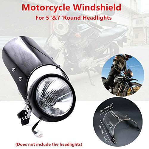 RETYLY Parabrezza Moto, Cupolino Cupolino Universale con Staffa di Montaggio Adatta per Fari Rotondi da 5 Un 7 Pollici, per Triumph Chopper Cruiser (Fumo)