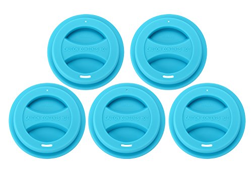 Set of 5 Reusable Drinking Coffee/Tea Silicone Cup Lids by Ksendalo, Outer Dia. 9.5cm Cup Mug Cover Lid, Spill-Proof Lid (Blue) by Ksendalo