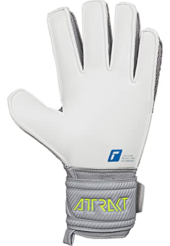 Reusch Guanti da portiere unisex da uomo, con cucitura esterna, taglio e impugnatura antiscivolo, adatti per tutte le superfici di gioco, guanti da calcio per adulti, grigio/giallo, 10,5