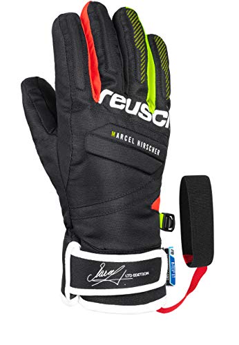 Reusch Marcel Hirscher R-Tex Xt - Guanti da Bambino, Bambini, 4961211, Nero/Rosso Fuoco, 4