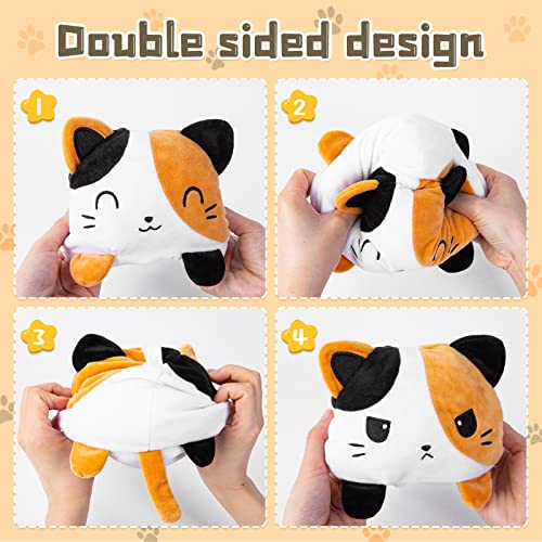 Peluche reversibile a forma di gattino: due diversi piccoli peluche per gatti d'animo: gattino felice e gattino infelice. Il nostro peluche per gatti adotta un esclusivo design a forma di gattino kawaii a doppia faccia, facile da capovolgere. Mostra il tuo umore senza dire una parola.