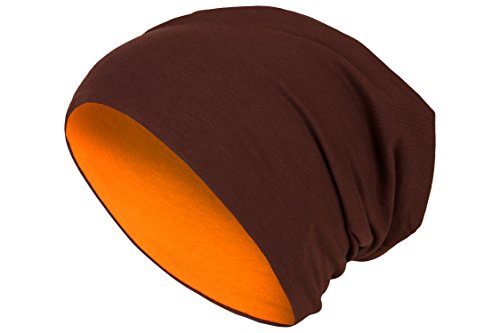 2 in 1 Reversibile Slouch Lungo Beanie Jersey Cotone Elastico Unisex Uomini Signore Cappello Heather in 24 Colori Diversi (8) (Marrone Scuro/Arancione)