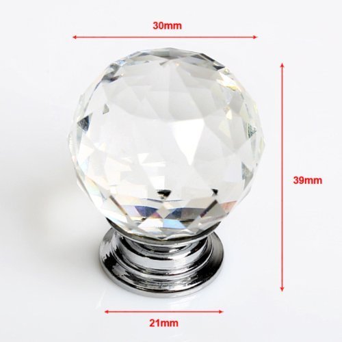 Revesun, 10 pezzi, 30 mm, trasparente, a forma di diamante, in cristallo, pomello per armadietto, cassetto per armadio, maniglia a tirante, ideale per armadietti, armadietti da cucina e da bagno, persiane