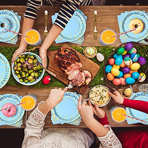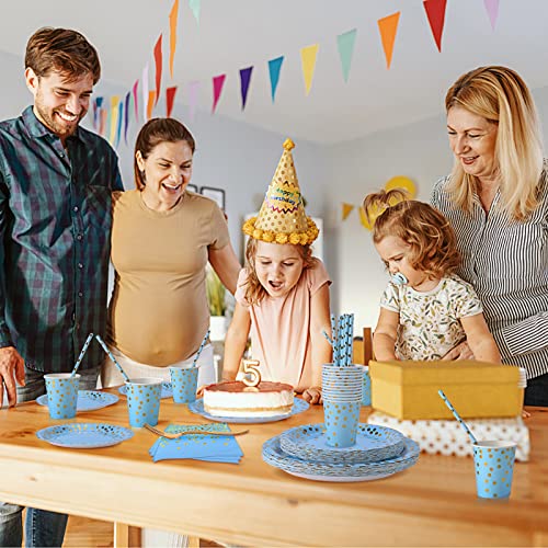 Revivoer Piatti Stoviglie per Feste, 150 Pezzi Piatti Stoviglie Carta Set per Nuziale Doccia, Fidanzamento, Matrimonio, Compleanno Riutilizzabili (25 Ospiti) (Blu)
