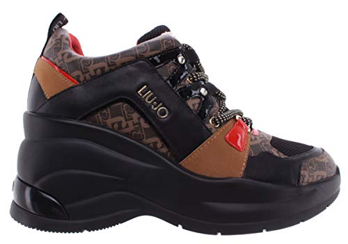 Liu Jo Revolution26 BF0095 Sneaker Zeppa Interna 7cm Pelle Nero-Caffe Iw - Taglia Scarpa 36 EU Colore Nero-caff