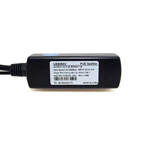 Revotech Attivo PoE Splitter 5V/2.4A Micro USB Presa, 48V PoE a USB 5V/2.4A Uscita, 10/100Mbps Conforme a IEEE802.3af/at, Adattatore PoE per Dispositivo Micro USB, Pi 3B/3B+ (USB0502)