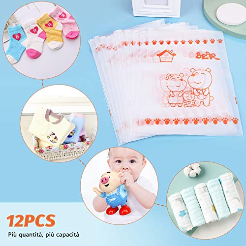 Grande Capacità: 12 Pezzi buste ospedale trasparenti (34*24cm), può contenere pannolini, bavaglini, magliette, necessità quotidiane ecc;