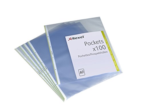 Rexel Busta Portadocumenti a Perforazione Universale A3, Ruvida, Trasparente, 100 Pezzi