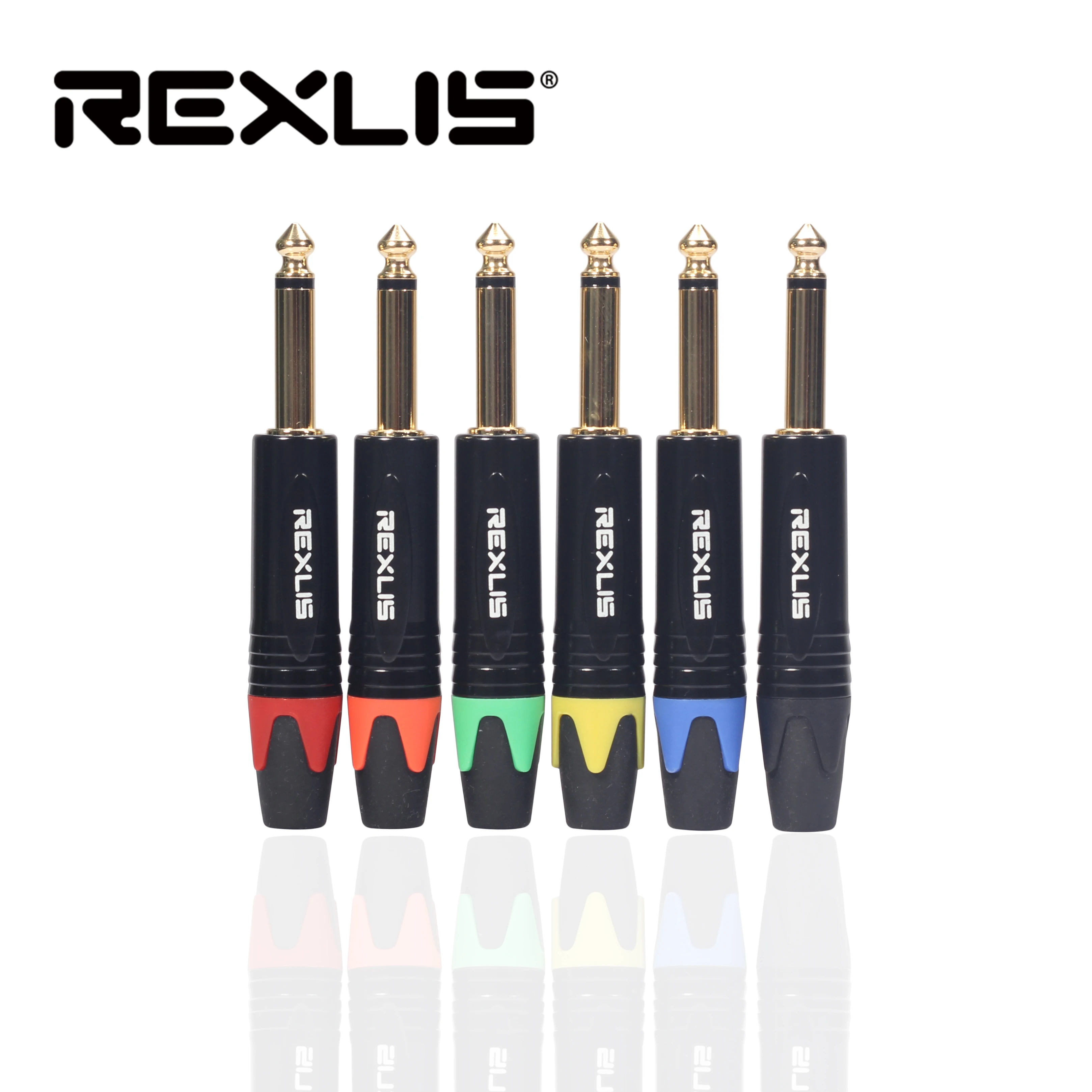 REXLIS 2/6pcs/lot Jack 6.35mm 2 Poles Mono Connector 1/4 Inch Mono Male Plug 6.3mm Microphone Cable Wire Connector Aluminum Tube