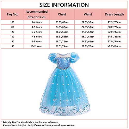 REXREII Vestitos da Principessa Frozen Elsa per Ragazze Carnevale Costumi Travestimento Compleanno Festa Nozze Cerimonia Natale Halloween Cosplay Vestire 3-4 anni