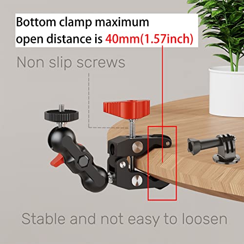 REYGEAK Lega di alluminio Super Clamp Camera Morsetto Mount Monitor 360 ° Testa a sfera Magica Braccio Doppia Testa A Sfera Adattatore, con 1/4 "-20 e 3/8 "-16 Filettatura per GoPro/DSLR Camera/DJI