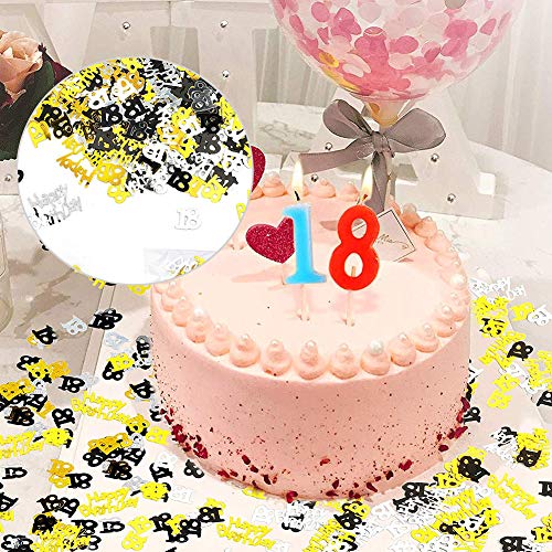La confezione contiene 12 pezzi di ricciolo sospeso con cartoncini e stelle filanti "18", 1 confezione numero 18 coriandoli metallici e 1 confezione coriandoli "BUON COMPLEANNO", il modo perfetto per personalizzare le tue decorazioni per il 18 ° compleanno o 18 ° anniversario.