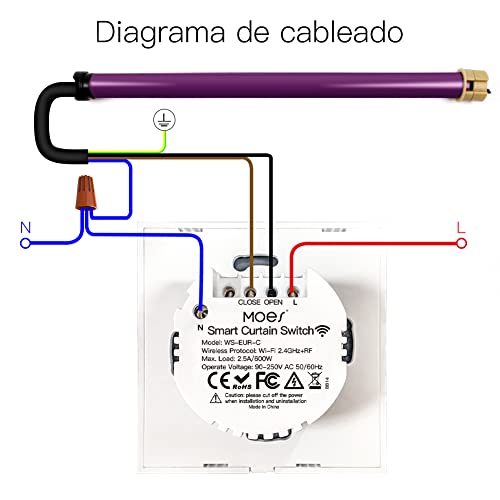 1. Metodi di controllo multipli: controllo manuale, telecomando RF, controllo vocale e controllo intelligente dell'app. Consente a 1/2 Way o l'associazione di controlli multipli per controllare 1 tapparella con più interruttori e un comando di gruppo per più interruttori. Si prega di notare che il motore per tende non è incluso in questo pacchetto e deve essere acquistato separatamente.