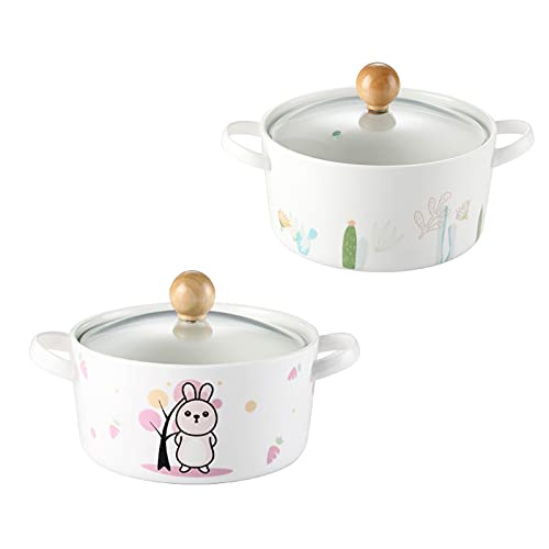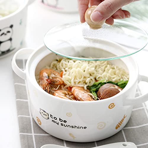 Rfeeuubft Ciotola per Noodle Istantanei nel Ceramica con Coperchio Ciotola per Noodle Istantanei e Set di Bacchette Porta Pranzo per La Casa, Pianta