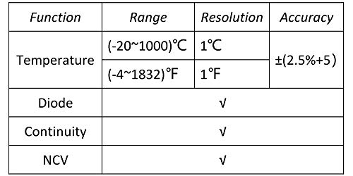Contenuto della confezione: 1 x Multimetro digitale RMS 1 x 16 in 1 linea di test multifunzionale 2 x sonda di prova 1 x sensore di temperatura 1 x borsa 1 x manuale utente inglese
