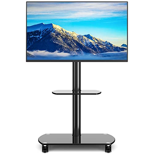 RFIVER Carrello TV da Pavimento Mobile Porta TV Supporto con Ruote Universale Girevole e Ripiano in Vetro per LED LCD Plasma Curvo Piatto 32-70 pollici Nero TF8001