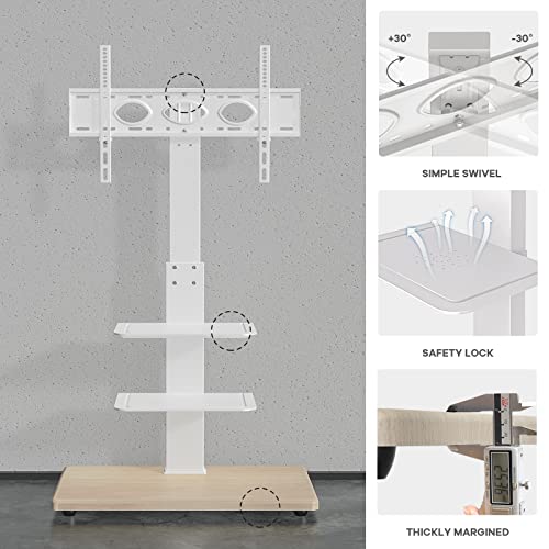 RFIVER Supporto TV da Pavimento Porta TV da Terra per Schermo 32-75 Pollici LCD/LED/Plasma, Supporto TV da Terra con Staffa Girevole con Base in Legno 2 Ripiani, Max 50 kg VESA 600x400 mm Bianco