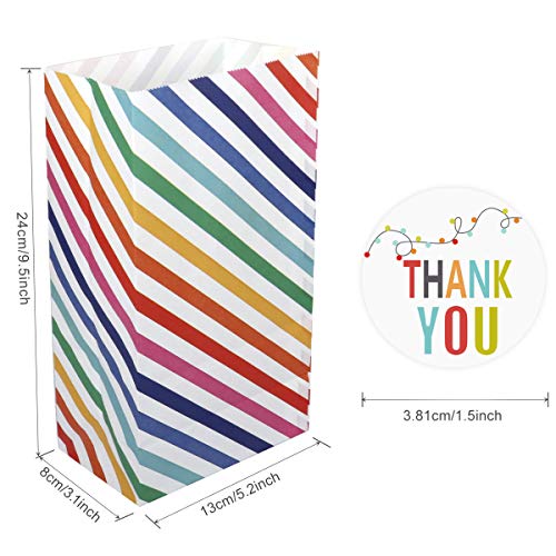 RFWIN 30 sacchetti di carta per feste, 12,7 x 22,9 cm, sacchetti di carta kraft con motivo a righe arcobaleno, sacchetti di carta per dolcetti, per compleanni, matrimoni, San Valentino, regali