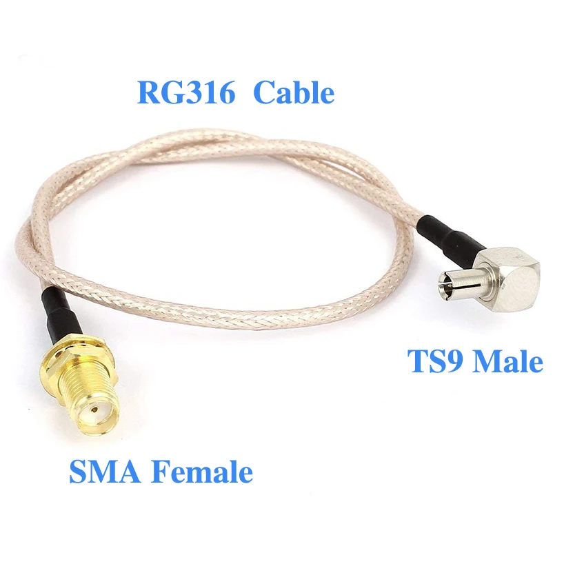 5Pcs RG316 30cm TS9 Male Plug Right angle to SMA Female Jack Connector Pigtail Extension Cable