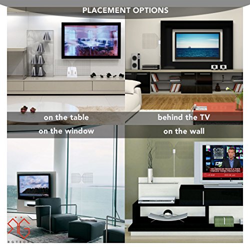 Funziona a casa, in parti della casa che non sono collegati via cavo o satellite, funziona in ufficio, all'interno dell'automobile, nel roulotte, nello yacht - Vi permette di posizionare l'antenna nel punto ideale con un cavo coassiale di circa 4,5m e con nastri di gommapiuma a doppio strato contenute nel volume di consegna - Design piatto, fino, discreto ed elegante che ha un bell'aspetto ovunque - Installazione facile plug-and-scan - Non si richiede una presa
