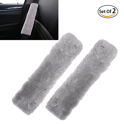RGTOPONE Automobile Cuscino Caldo 100% Lana Genuina Vello Zaino Protezione Della Spalla Aereo Auto Copertura Della Cintura Di Sicurezza Elegante Veicolo Imbottitura Della Cintura Di Sicurezza Miglioramento Del Design Super Morbido Più Comodo Supporto Collo/Testa Per Bambini Adolescenti Adulti Gli Anziani, Set Di 2