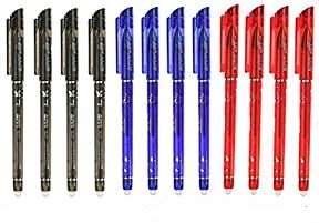 RHardware 12 penne cancellabili rosso,blu,nero, con punta a pennino da 0,5 mm, scrittura scorrevole, cancelleria per la scuola