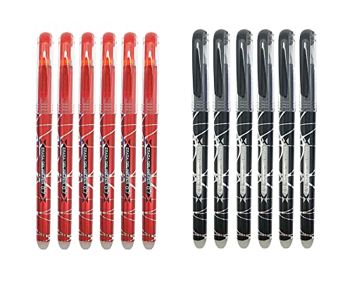 RHardware 12 penne a inchiostro nero, rosso cancellabile in gel 0,7 mm, penne cancelleria scolastica