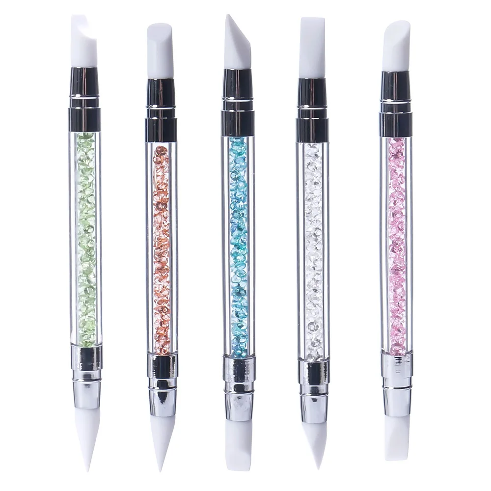 1pc 2 Way Rhinestone Crystal Nail Art Brush Pen Silicone Head Carving Emboss Shaping Hollow Sculpture Acrylic Manicure Tools